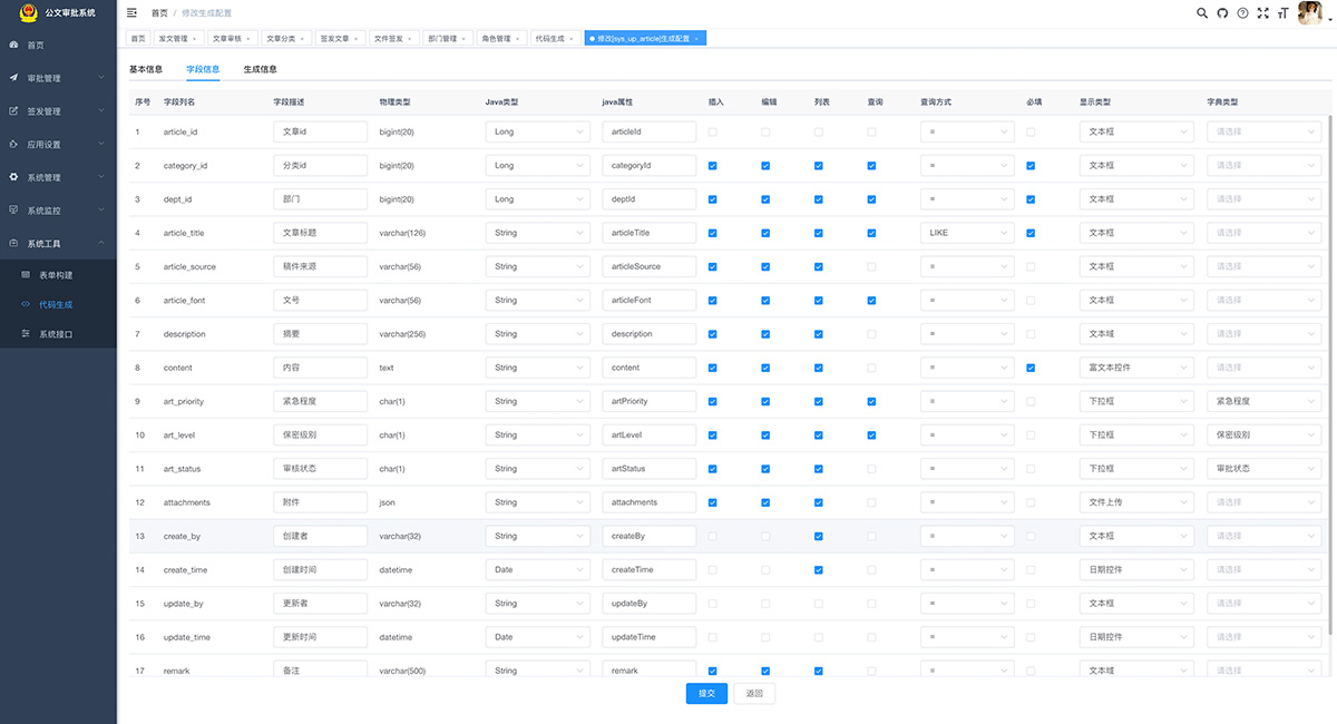 適用于政府機關、企事單位公文審批,系統采用Java EE 企業級快速開發平臺,基于經典技術組合(Spring Boot、Spring Security、MyBatis、Jwt、Vue),內置模塊如:部門管理、角色用戶、菜單及按鈕授權、數據權限、系統參數、日志管理、代碼生成等;