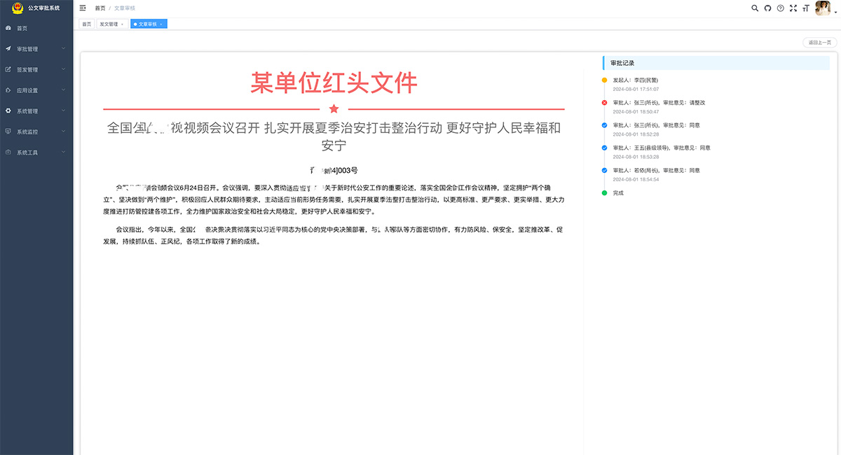 流程分為三個層級,下級部門發文,需要上級部門完成審核,從而大大提高了審批效率。